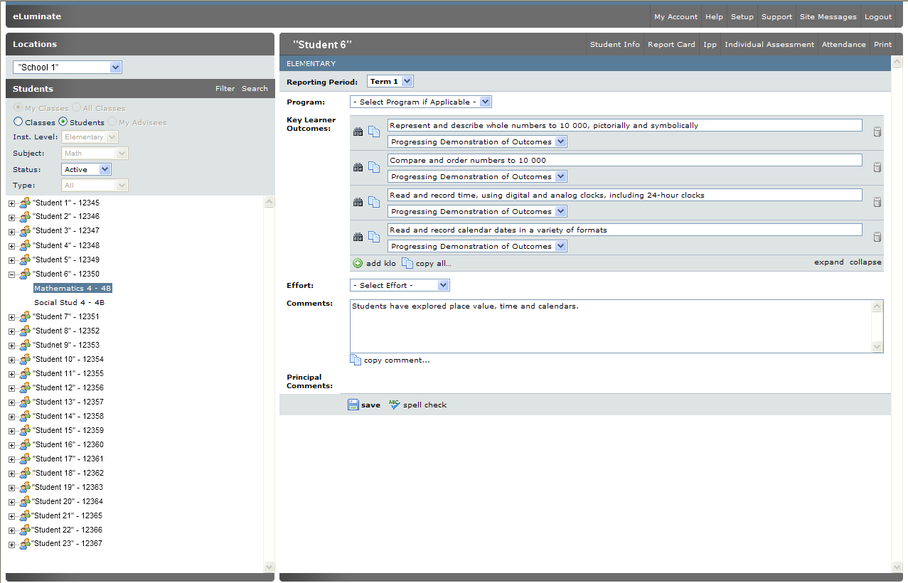 Tired of trying to fit a square peg into a round hole? In other words are you frustrated with trying to get your student information system to enable Outcome Based Reporting when it has not been designed to do so? Look no further than eLuminate, an intuitive Outcome Based Reporting tool developed specifically for easy creation and customization of lesson plans rooted in curriculum driven outcomes. eLuminate makes the creation of report cards seamless, stress-free and most importantly provides students and their parents direct visibility to student progress against curriculum driven outcomes.