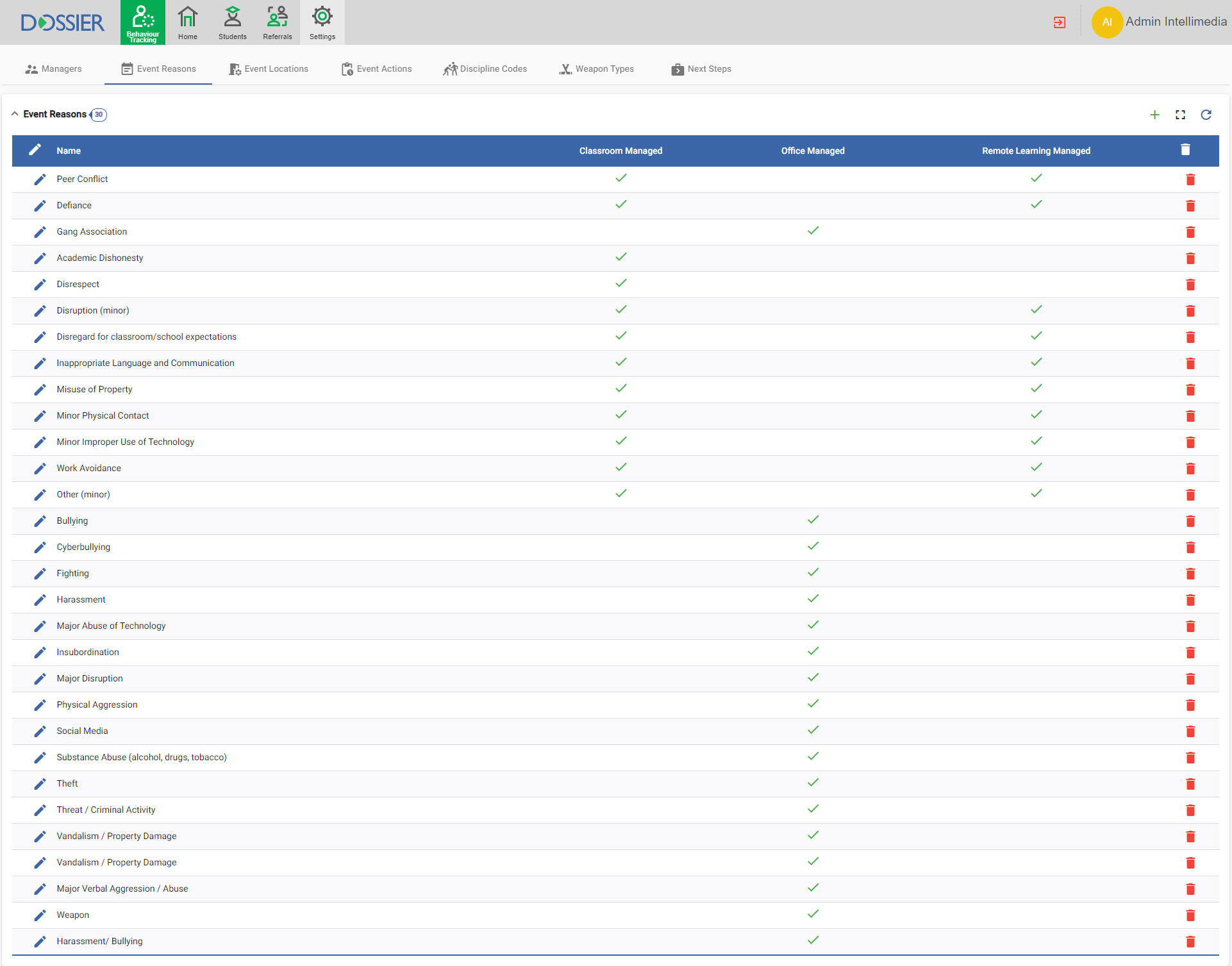 Staff can manage response to events themselves (Classroom Managed) or escalate to Administration (Office Managed)