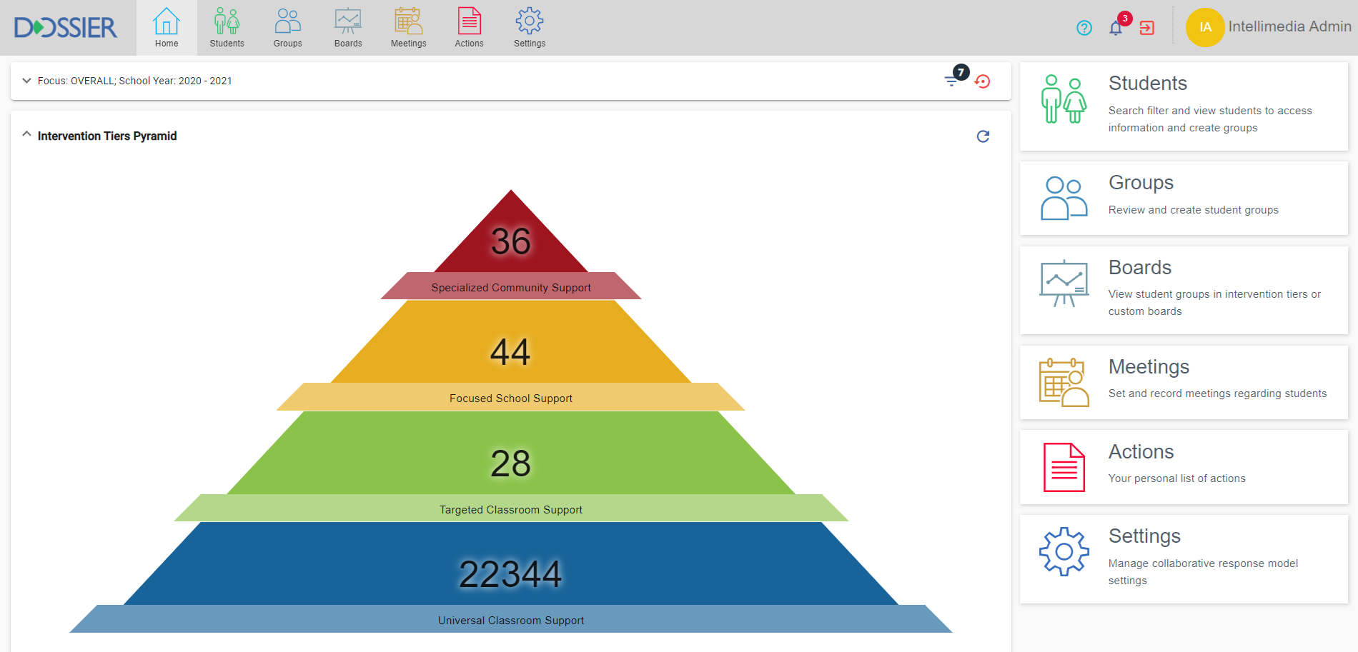 Visually organize and access students in team boards, indicating current levels of support needed in coordination with a school's collaborative response to intervention model.
