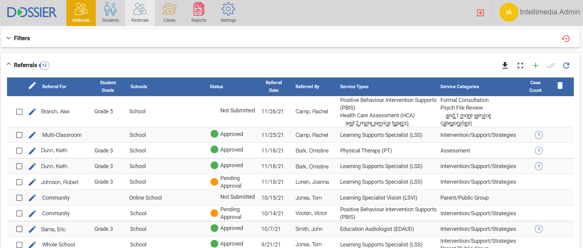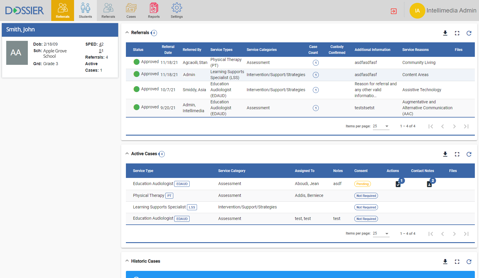 Once approved, Managers and Therapists may create Cases (the referral may require more than a single service provider to work with the student).