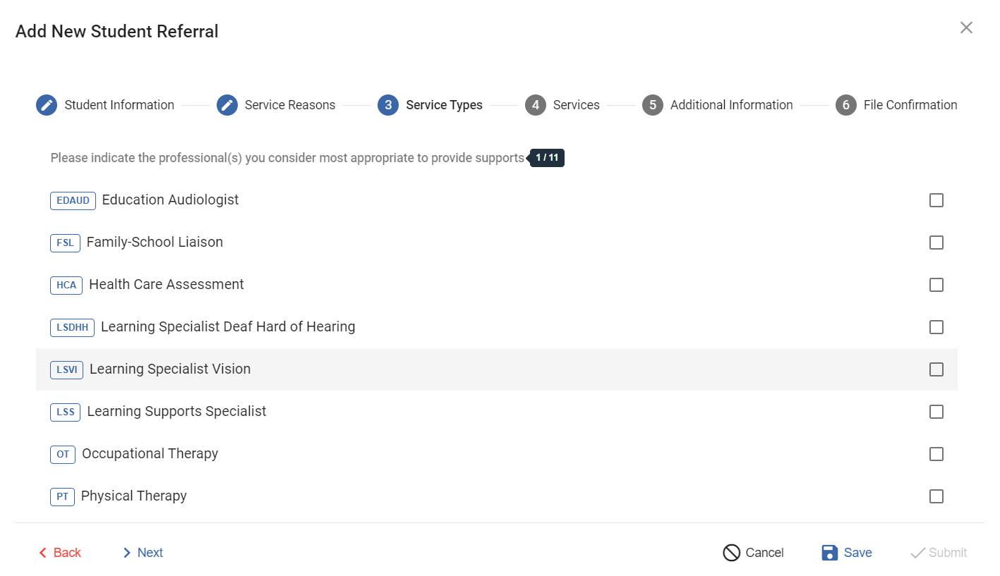 - School Staff (Principals, Learning Support Teachers) can discuss and request these services for students or in a group environment