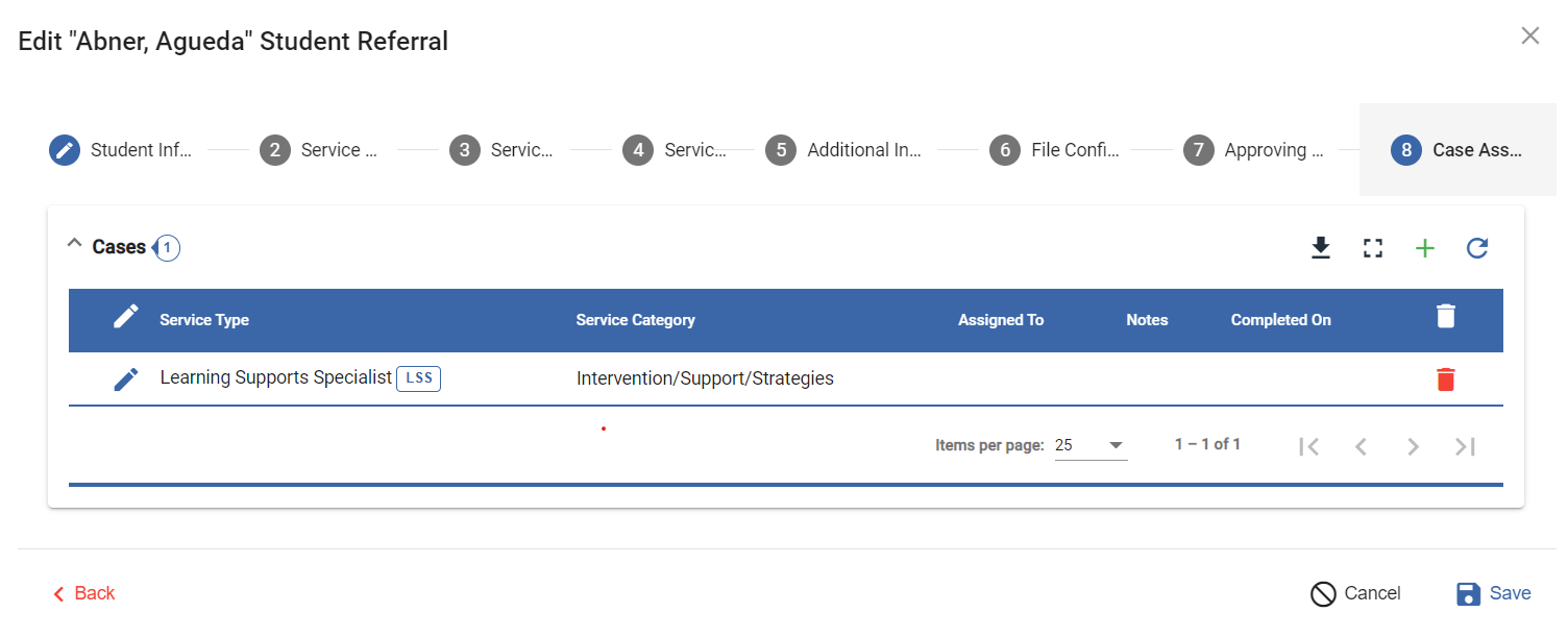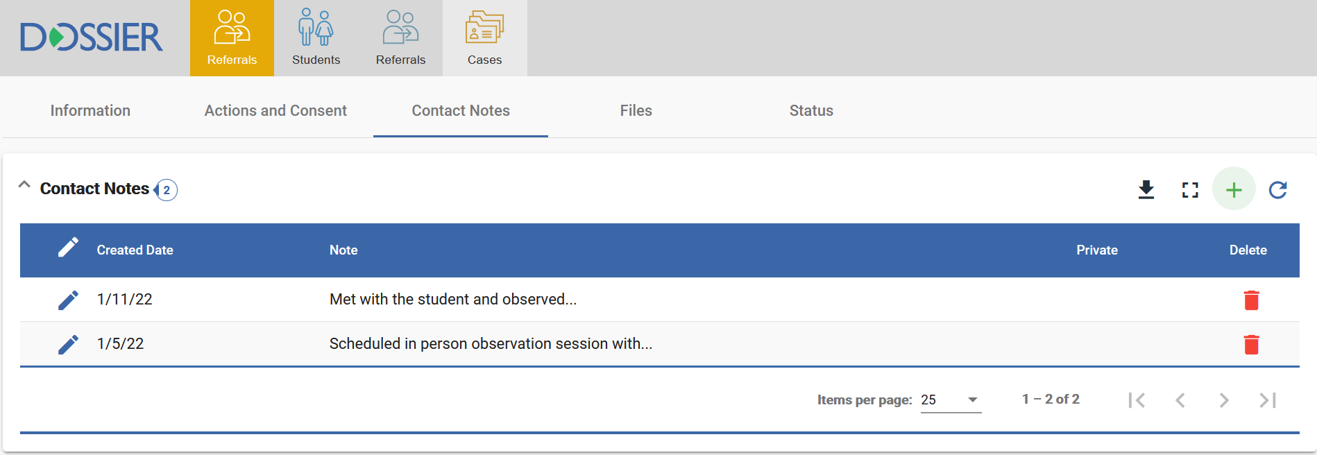 As the service providers work with the student Case Notes can be recorded and Files can be uploaded. A case is considered closed with all case actions have been completed.